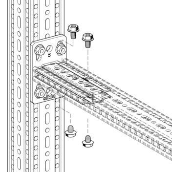 Das an den Stirnadapter STA F 80/30 anzuschließende Trägerprofil TP F 80/30 ist mit 4 Formlockschrauben zu verschrauben. Wand- und Deckenanbindung mittels Schwerlastankern M12.